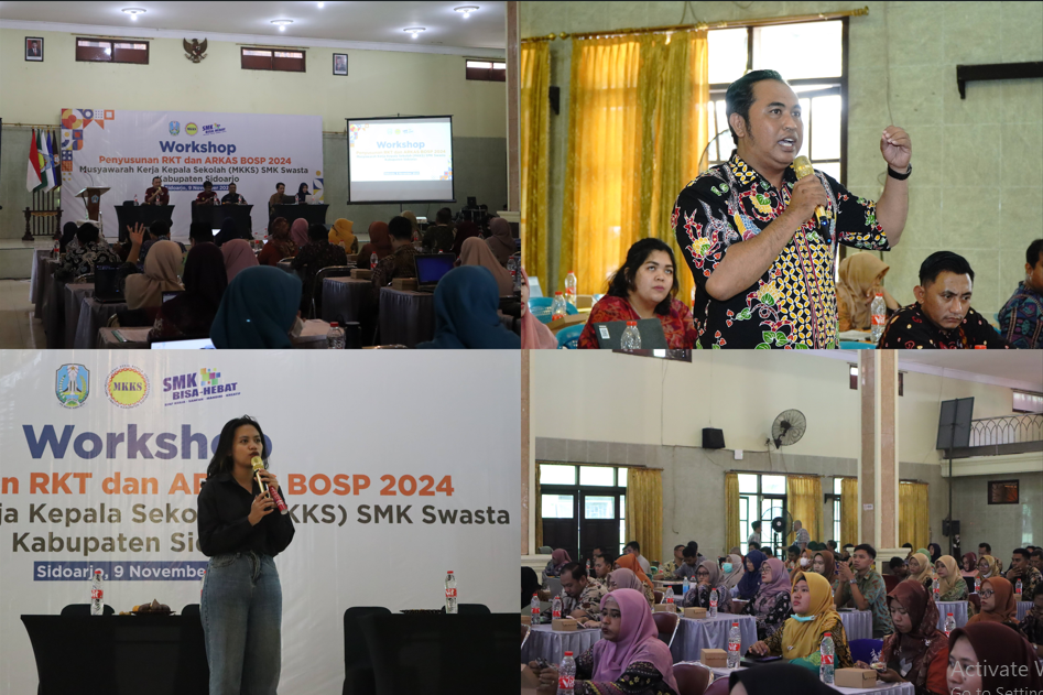 Sidoarjo, 9 November 2023 - SMK Swasta Kabupaten Sidoarjo menggelar kegiatan workshop yang bertujuan untuk membahas penyusunan Rencana Kerja Tahunan (RKT) dan Analisis Kebutuhan Administrasi dan Sarana (ARKAS) Bantuan Operasional Sekolah (BOSP) tahun 2024. Kegiatan ini dilaksanakan dalam rangka Musyawarah Kerja Kepala Sekolah (MKKS) dan diadakan di Aula Graha Family SMK Krian 1 pada tanggal 9 November 2023.